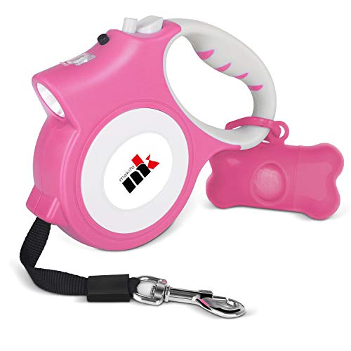 Makife Einziehbar Hundeleine 5m unter 25kg Große und Mittelgroße Hunde, Taschenlampe, Hundekotbeutel mit Beutelspender - Rosa