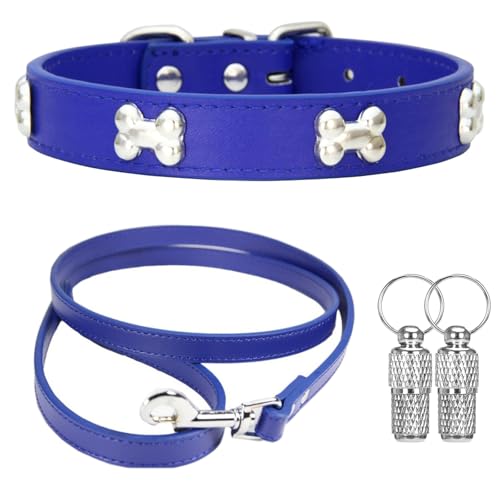 Suiecuor Halsband und Leinenhalsband hundehalsband kleine Hunde Lederhalsband Geeignet für kleine mittlere groß Hunde und Katzen Blau XS