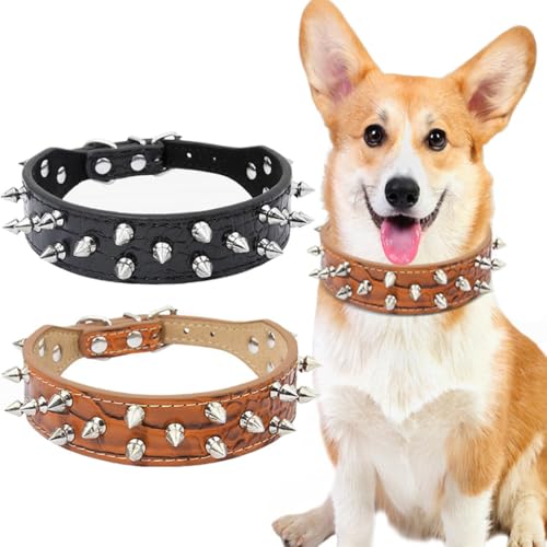 Eine Reihe von Nieten besetzt, stark, stabil, schützt Ihren Hund vor Angriffen anderer Hunde Sehr niedliches modisches Halsband für Hunde, weiches PU Leder, hochwertig und hautfreundlich Das Halsband hat 5 Löcher, Sie können den Umfang nach Belieben anpassen Die niedlichen Hundehalsbänder haben ein schönes und glänzendes Design Geeignet für die meisten kleinen hunde und katzen, einschließlich Chihuahuas, Shih Tzus, Pudel, Corgis, Möpse und mehr