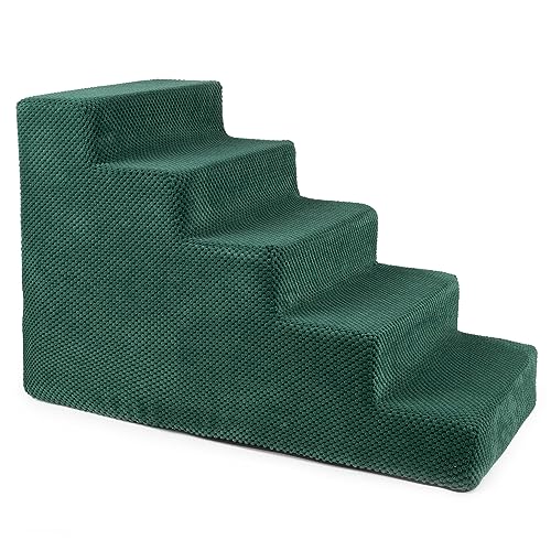 BOUTIQUE ZOO Hundetreppe 50 cm hoch | Katzentreppe Haustiertreppe | 5 Stufen | Hunde Katzen Haustier | für Bett und Auto | Trepp für kleine Hund | Plüschbezug | Farbe: Grün
