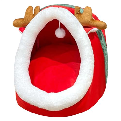 Fogukier Weiches Katzenhaus, Weihnachts-Katzenhöhle, waschbar, halbgeschlossene Katzenbetten – bequemes Haustierzubehör, rutschfeste, abnehmbare Katzen-Couch für Hunde und kleine Katzen