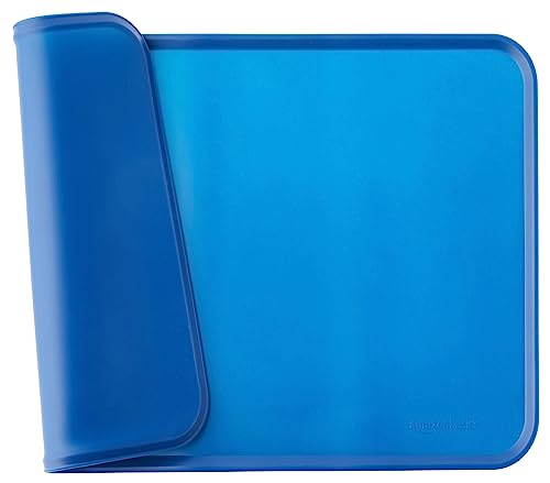 Amazon Basics Wasserabweisende Napfunterlage aus Silikon, Unterlage für Haustierfutter, 47 x 29 cm, Blau, Einzelbett