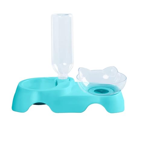 Deger Doppelte Hundenäpfe, Wasser- und Futternapf-Set für Haustiere, mit Automatischer Trinkflasche (Blau), Einfache Installation