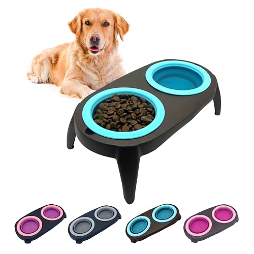 EL ÁTICO PETS Hundenapf Erhöht mit Antischlingnapf Hunde. Fressnapf Katze mit Trinkbrunnen für Katze. 2 Ausziehbare and Ausklappbare Katzennapf Flach. Erhöhter Hundenapf. Hunde Napfset (Blau)