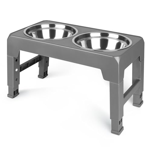 Erhöhter Doppelnapf für Hunde, Futternapf für Hunde, höhenverstellbar mit 3 Ebenen, Schüsseln aus Edelstahl, 44 x 24 x 8 cm (grau)