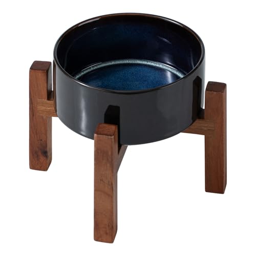 Havniva Erhöhter Futternapf für Hunde und Katzen, Keramik, 15,5 cm, 2 Höhen, erhöhter Holzständer für kleine Rassen, beschwerter Futternapf und Wassernapf für Haustiere (15,5 cm, 813 ml, Sternenhimmel