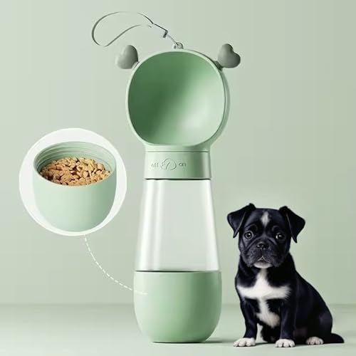 Hunde Trinkflasche Wasserflasche unterwegs Haustier mit Leckerli Behälter (grün, (350 ml Wasser + 200 ml Futter))