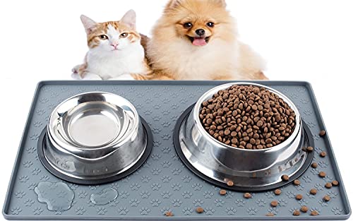 MLAHBT Hunde Futtermatte Katzen Futtermatte Napfunterlage Silikon, Futtermatten für Hunde rutschfeste um EIN Auslaufen von Wasser oder Lebensmitteln zu vermeiden, spülmaschinenfest(Grey)