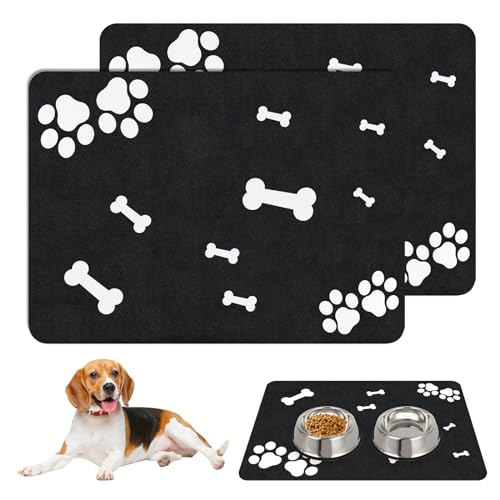 Napfunterlage Hund, 2 Stück Napfunterlage Katzen, Futtermatte Hund 60 x 40 cm, Super Saugfähige Futtermatte Katzen, rutschfeste & Wasserdicht Hundenapf Unterlage, Futternapf Matte, Schwarz