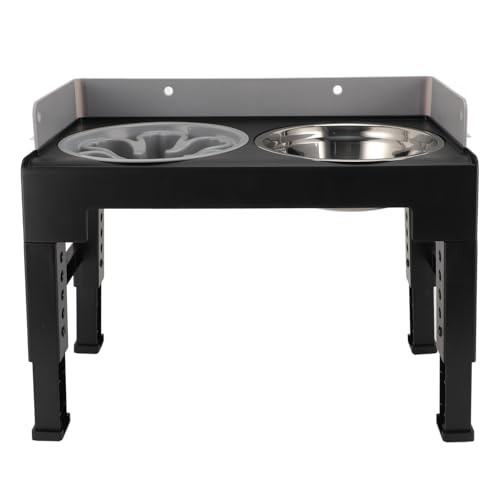 LUCKDANO Verstellbarer, Erhöhter Hundenapfständer, Nackenschutz, Rutschfester Hundefutterautomat, Erhöhte Hundenäpfe mit Edelstahl, für Mittelgroße und Große Hunde, mit Vielseitigem (Grey)