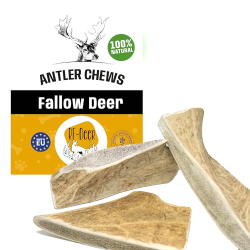 NATÜRLICHE DAMHIRSCHGEWEIH-KAUSTANGE - 100% natürliches Produkt, ohne Tierleid hergestellt. Reich an Mineralien und Nährstoffen, frei von Farbstoffen und Konservierungsstoffen. Fördert die Zahngesundheit und sorgt für langanhaltenden Kauspaß. Tipp: Vorab in heißem Wasser einweichen für intensiveres Kauvergnügen. GESUNDER KAUARTIKEL FÜR HUNDE - Natürliche Alternative zu tierischen Leckerlis. Unterstützt die Zahnpflege, stärkt die Kaumuskulatur und liefert essentielle Mineralstoffe für gesundes, nachhaltiges Kauen. SICHER UND HYPOALLERGEN - Unter tierärztlicher Kontrolle gemahlen und thermisch sterilisiert für maximale Sicherheit. Hypoallergen, perfekt für empfindliche Hunde, die einen sicheren Kausnack suchen. LANGANHALTENDER KAUSPASS Hochwertige Damhirschgeweih-Stücke bieten monatelangen Kauspaß. Hunde erreichen das schmackhafte Mark durch Abreiben der robusten, splitterfreien Schicht. FÜR ALLE HUNDERASSEN - Erhältlich in verschiedenen Größen, ideal für Hunde jeden Alters und jeder Größe, von Welpen bis Senioren.
