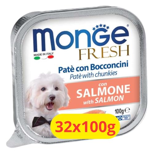 Monge Fresh Feuchte Hundepastete mit Leckerlis mit Lachs - 32 x 100 g