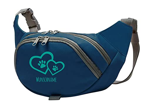 Tierisch-tolle Geschenke Hundesport Bauchtasche Leckerlie-Tasche mit 2 Herzen, 2 Pfoten und Wunschnamen personalisiert | Hundetraining | Leckerlie Beutel (Blau/Türkis)