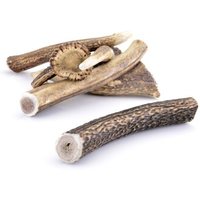 Zahnpflege ist wichtig ! In der Natur reinigen Tiere Ihre Zähne auf ganz natürliche Weise durch das Kauen von z.B. Knochen. Heutzutage erhält der Hund zwar eine Vielzahl an Nährstoffen über die Futtermittel, jedoch fehlt hier die Zahnreinigung komplett. Was bietet sich als Ersatz mehr an als ein vollkommen natürlicher Kausnack den unsere Hunde zudem lieben ? Larsson-Snacks sind hier die ideale Zahnpflege ! Aufgrund ihrer Zusammensetzung sind sie ausgesprochen gesund.Geweihe bestehen aus wertvollen Mineralien und Spurenelementen wie etwa Eisen, Phosphor, Schwefel, Calcium, Magnesium, Kalium und Zink (um nur einige zu nennen) und diese auch noch in einem optimalen Verhältnis. Der jeweilige Gehalt dieser Nährstoffe hängt vom Lebensraum der Tiere ebenso, wie von den Witterungsbedingungen und Essgewohnheiten der Tiere ab. Das einmalige Abwerfen derGeweihe im Jahr, macht diese zu, im wahrsten Sinne des Wortes, einem nachwachsenden Rohstoff. Kein Tier wird hierfür getötet sondern liefert uns diesen tollen Rohstoff vollkommen freiwillig. Um den Tieren den natürlichen Lebensraum nicht zu zerstören, und sie nicht durch Motorengeräusche unnötigem Stress auszusetzen, erfolgt das Einsammeln ausschließlich zu Fuß und von Hand. Hier zählt jeder Tag! Je frischer dieGeweihe sind, umso mehr Nährstoffe können bei der weiteren Verarbeitung erhalten werden. •Geweihe sind sehr hart und reich an Kalzium und anderen Mineralien • UnsereGeweihstücke werden beim Kauen weder klebrig noch schleimig • Unser Snack reinigt und pflegt auf natürliche Weise die Zähne Ihres Hundes und ist zu 100% Natur pur • Larsson-Snack ist ein ehrliches, nachhaltiges, tierfreundliches, robustes und zudem umweltbewusstes Naturprodukt Größe: 160 - 250g oder > 20 cm Kleiner Hinweis: Stellen Sie sicher, dass die Größe, die Sie kaufen, der Größe und Beißkraft Ihres Hundes entsprechen. Beaufsichtigen Sie bitte Ihren Hund während des Kauens und entfernen Sie gegebenenfalls kleine Reststücke.