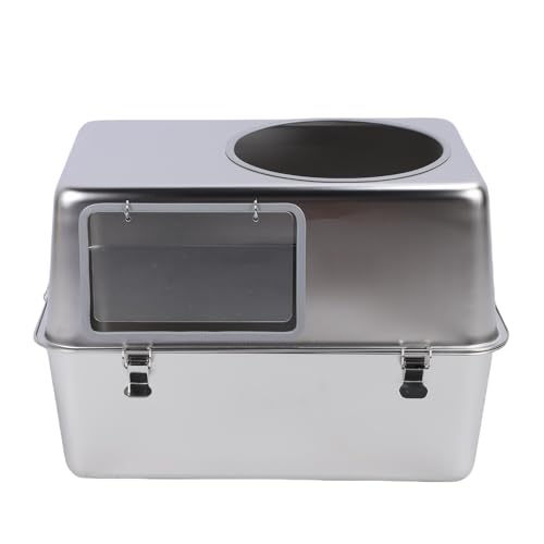 Pssopp Edelstahl -Katzen -Toilette, Große Kapazität Top Eingangsmetallkatze Katzentoilette mit Deckelschaufel für Große Kätzchenkatzen