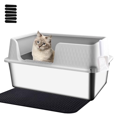 Premium-Qualität: Hergestellt aus hochwertigem Edelstahl, kann dieses Metallmaterial Korrosion, Rissen und Verziehen widerstehen, was eine lange Nutzungsdauer bieten kann. 【Anzug für kleine & mittelgroße Katzen】 Wir bieten 2 Größen & 2 Farben (M50*35*20cm & L50*35*25cm, Grau & Weiß), unsere Edelstahl-Katzentoilette kann genug Platz für Ihre Katze bieten, um sich frei zu bewegen, sich umzudrehen und ihr Geschäft bequem zu erledigen. 【Glatte Oberfläche】 Die reflektierende Oberfläche, die gut zu Ihrem Zimmer passt, egal welcher Stil Ihr Haus ist. Das einzigartige glänzende Design verleiht ihm ein hochwertiges Aussehen, macht es aber auch zu einer nahtlosen Ergänzung zu Ihrer Wohnkultur. 【Hochseitiger Zaun】Unser Design mit hohen Kanten kann verhindern, dass Urin verschüttet wird, auch die hohen Kanten und die Katzentoilette können effektiv verhindern, dass die Streu heraustritt, während sie mit Graben oder Abdecken beschäftigt sind. Leicht zu reinigen: Die glatte Oberfläche des Edelstahls fängt keine Streu, Schmutz oder Gerüche ein. Mit nur einem einfachen Abwischen mit einem feuchten Tuch oder einem schnellen Waschen mit milder Seife und Wasser erhalten Sie eine fast neue Katzentoilette.