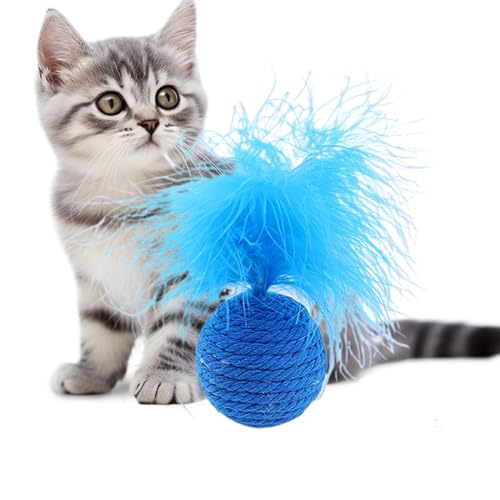 Mxshc Katzenball mit Feder, interaktives Kätzchenspielzeug, bissfestes Katzenspielzeug Federball Katzenspielzeug mit Federn für Katzen Haustiere