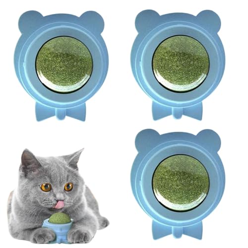Mxshc Katzenwand Katzenminzenkugeln, Katzen -Nip -Kugeln an der Wand kleben,Katzenzähne Reinigung Spielzeug | Lick Safe Silvervine Ball Gesunde Katzenminze Unterhaltung Rotatable Spielzeug
