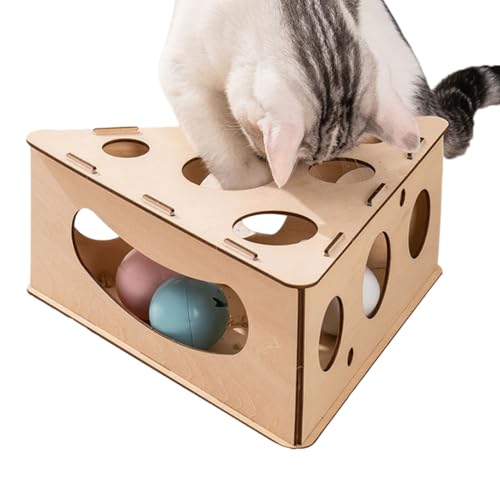 Nexusectar Interaktive Katzenspielzeuge - Holzfangballspiel Für Kätzchen - Dreieckiger Kratzspielzeug Ball Aus Holz Für Stubenkatzen Und Kätzchen Beschäftigt Und Angeregt