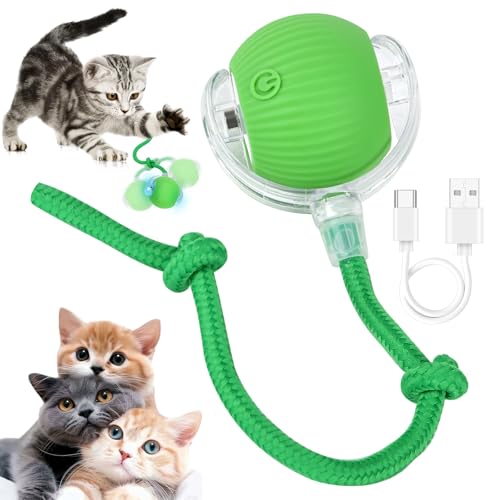 jwogngls Interaktives Katzenspielzeug, Interaktiver Spielball für Katzen USB Aufladbar, Katzenball Elektrisch mit Schwanz, 360° Automatisch Katzenspielzeug Ball für Katzen (Grün)