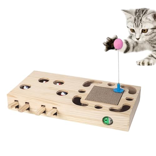 【Robustes Holz】 Hergestellt aus Holz und ausgestattet mit hochdichter Wellpappe mit Gitterdesign, sorgt dieses Spielzeug für eine sichere Spielzeit für Ihre Indoor-Katze. Genießen Sie Sicherheit mit dem Sicherheitsmaterial, da es über glatte Ränder und keine Splitter verfügt, was Ihrer Katze mehr Spannung bietet und gleichzeitig robust und sicher ist 【Mühelose Verwendung】Drücken Sie den Holzmaulwurf und beobachten Sie, wie Ihre Katze durch den federbelasteten Teaser am Rand der Box unterhalten wird. Mit einem einfach zu bedienenden Katzenpfotengriff ist es einfach, Ihre Hauskatze stundenlang aktiv zu halten 【Komplette Spiellösung】Verbessern Sie die Lebensqualität Ihrer Hauskatze mit unserem All-Inclusive-Design, das Spielzeug, Kratzbrett und Ruhebereich integriert. Das Jagdspiel und der Katzen-Teaser-Stick wärmen sich auf und unterhalten Ihren Katzenfreund, was zu einem glücklichen und aktiven Haustier den ganzen Tag führt Verbessert die Bewegung: Mit hüpfenden Bewegungen und verlockenden Zielen, wunderbar für die Motivation weniger aktiver Katzen, sorgt für lebendiges Spiel, das Fitness fördert und unerwünschtes Kratzen bremst 【Weitgehend kompatibel】 Gönnen Sie Ihrem Katzenfreund einen lustigen und aktiven Lebensstil mit unseren Indoor-Katzenspielzeugen. Ihre spielerische Natur wird verbessert, so dass auch faule Katzen körperlich aktiv sind. Geeignet für alle Altersgruppen, um Ihre Katze gesund und glücklich zu halten