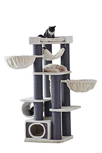Grundfläche: 60 x 60 cm Höhe: ca. 165 cm Kratzstämme: Sisal, Ø 12 cm, anthrazit Farbe: cream wird in 2 Kartons geliefert, besonders für große Katzen geeignet
