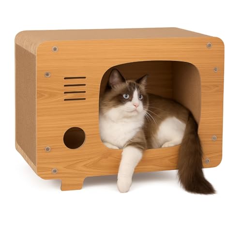 [Einzigartiges Design, das jedes Interieur bereichert]: Der Kratzbrett Für Katzen in Fernseherform ist nicht nur ein praktischer Platz für Ihre Katze, sondern auch eine stilvolle Ergänzung, die die Aufmerksamkeit der Gäste auf sich zieht und zu einer Dekoration jedes modernen Interieurs wird. Die außergewöhnliche Optik verleiht dem Raum Charakter und animiert Ihre Katze zugleich zum Spielen und Entdecken – ein perfektes Katzenspielzeug für stilbewusste Tierliebhaber. [Spielen und Entwickeln des Katzeninstinkts]: Der offene Raum des „Bildschirms“ des natürlichen Katzenkratzers lädt Ihre Katze zum Springen, Erkunden und Verstecken ein. Dieser multifunktionale Spielplatz bietet Ihrer Katze sowohl intensives Spielen als auch entspanntes Ruhen und fördert dabei ihren Jagdinstinkt und ihre Neugier. Stundenlange Selbstbeschäftigung sind garantiert! [Solide und sichere Konstruktion für viele Jahre]: Hergestellt aus hochwertigen Materialien wie MDF, Karton und ABS, kombiniert der Kratzbaum Kratzpappe & Kratzteppich Für Katze für maximale Haltbarkeit und Sicherheit. Die robuste und stabile Konstruktion mit abgerundeten Kanten sorgt für unbeschwertes Spielen und Ausruhen, selbst bei intensiver Nutzung. [Entspannung und Komfort an einem Ort]: Das Innere des Kratzbretts für Katzen wurde speziell gestaltet, um Ihrer Katze einen bequemen Rückzugsort zu bieten. Es ist ein sicherer und gemütlicher Ort, an dem Ihre Katze entspannen, ihre Umgebung beobachten und sich vollkommen sicher fühlen kann – perfekt für stundenlangen Komfort und Ruhe. [Innenschutz und Funktionalität]: Der Kratzbaum schützt Ihre Möbel wirksam vor Schäden durch Krallen und fungiert gleichzeitig als praktisches und stilvolles Katzenspielzeug. Dank seiner Langlebigkeit und einfachen Pflege ist er die ideale Langzeitinvestition, die sowohl Katzen als auch deren Besitzern Freude bereitet.