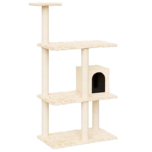vidaXL Kratzbaum, Katzenkratzbaum mit Sisal-Kratzsäulen, Katzenbaum mit Katzenhöhle Plüsch, Kletterbaum für Katzen, Katzenmöbel, Creme 119 cm