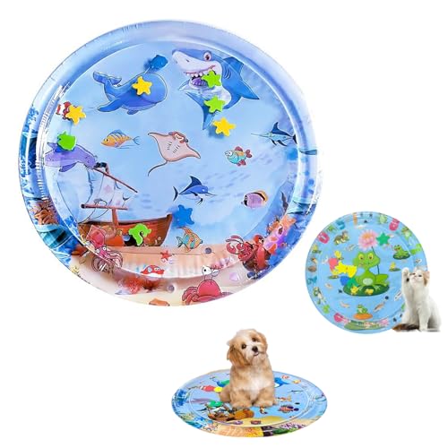 Oveallgo Hunde Spiel Und KüHl Wassermatte, Wasser Sensory Spielmatte FüR Katzen, 65/85/100/105 cm, Runde, Verdickte Sensory-Wasser-Spielmatte FüR Das Spielen Mit Haustieren (100cmB)