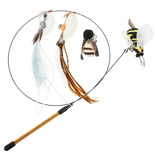 FONDOTIN 1satz Interaktives Katzenspielzeug Mit Austauschbaren Federn Lange Katzenangel Für Indoor-Katzen Fördert Und Spielverhalten Lustige Katzenunterhaltung