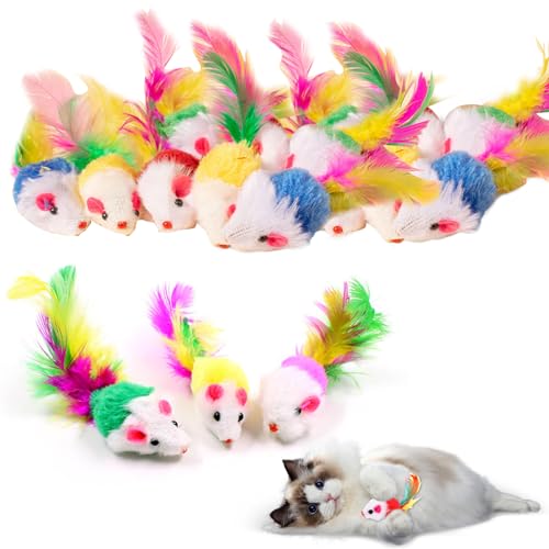 【Mehrere Farben】: Sie erhalten 20 stückkatzenspielzeug mit federn , mäusekatzenspielzeug mit federschwanz, mehrere farben stehen zur auswahl, können schnell die aufmerksamkeit der katze auf sich ziehen und sind das beste spielzeug für hauskatzen 【Hochwertiges Material】: katzenspielzeug mäuse aus plüsch, sicher, weich, leicht und langlebig, regt den jagdcharakter der katze an, ist für alle arten von katzen geeignet und kann ihre katze stundenlang glücklich machen 【Angstlinderung】: Maus katzenspielzeug wie plüschspielzeug, gefüllt mit etwas sand, das ein leises rascheln erzeugen und die aufmerksamkeit der katze auf sich ziehen kann, die katze leicht anzieht, die stimmung der katze lindert und glücklich spielt 【Interaktives Spielzeug】: Die federn von mäuse spielzeug für katzen faszinieren katzen und eignen sich zum jagen, beißen, kratzen usw spaß für katzen 【Interessanter Partner】: Dieses interessante mini haustier spielzeug kann das jagdverhalten von katzen anregen, freundschaften mit katzen schließen, die freundschaft zwischen ihnen und ihrer lieben katze stärken, mit ihrem haustier spielen und ein interessanter partner werden