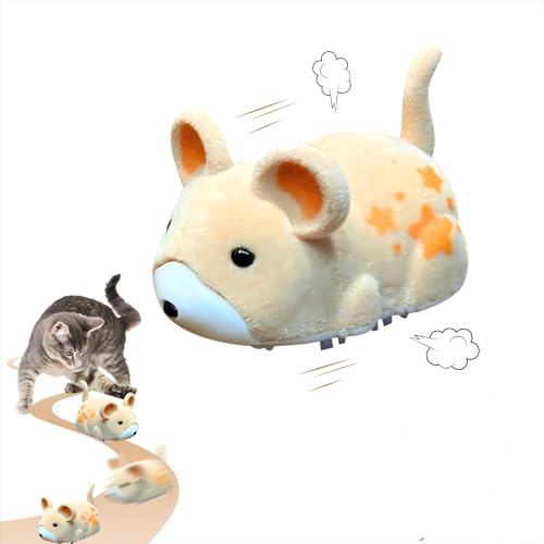 ACAREY Katzenspielzeug Maus Elektrisch, Interaktives Katzen Spielzeug Selbstbeschäftigung mit 2 Knopfzelle, Realistische Geräusche Elektrisches Mäuse, Selbst Bewegen Hindernisse Vermeiden (Gelb)