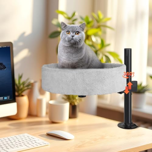 BSWAY Katzenbett für Schreibtisch - Kein Bohren 360°Drehung, verstellbare Höhe Erhöhtes Katzenhaus über Schreibtisch Hält Kätzchen Katze nah und Arbeitsbereich Klarer Tisch-Katzenbett (Grau, XL)
