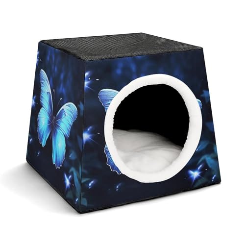 Capsule Pet Waterloo Blauer Schmetterling bedrucktes faltbares Hundehaus Katzenhöhle weiches Kätzchenbett warmes Kaninchennest Chinchillas Versteck für kleine und mittelgroße Tiere im Innenbereich