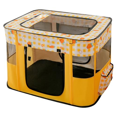 Cat -Playpen -Karottenmuster faltbar Faltbarer Oxford Kitten -Playpen mit Reißverschluss Tür, Glasfaserunterstützung und atmungsaktives Netz für Innenkatze, Partuation, Ruhe, M.