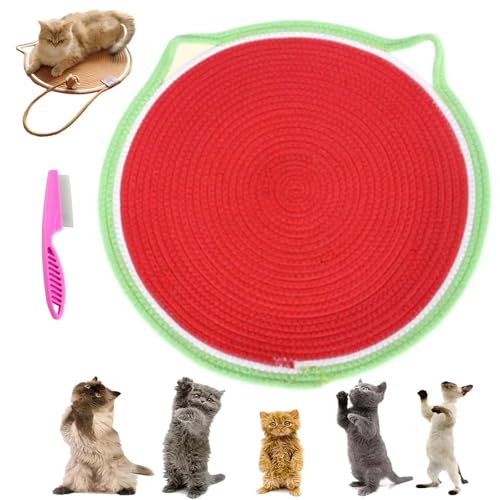 ClawLoom Dual Kratzmatte, Clawloom Doppelseitiger Katzenkratzer, Natürliches Baumwollseil Katzenkratzmatte, 2 in 1 Katzenbett Kratzmatte Innenbereich, Geeignet für Alle Katzen (Rot, 42cm)