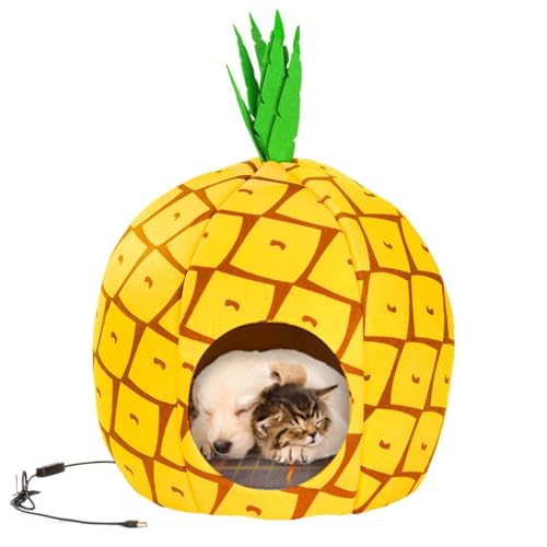 Geschlossenes Katzenbett Mit Heizung, Beheizte Katzenhöhlen | Beheiztes Haustierbett Mit Einstellbarer Temperatur Und Timer - Komfortables Haustiernest Mit USB-Anschluss, Katzenhaus Für