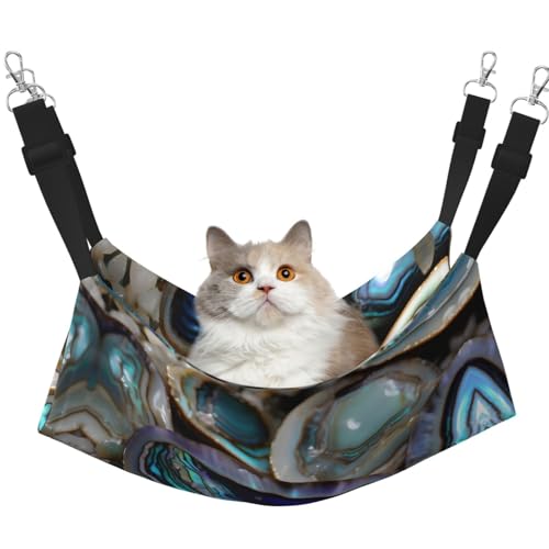 KOUUIP Abalone Katzenhängematte mit Perlmutt-Druck, zum Aufhängen von Käfigen, Haustier-Hängematte, Bett, verstellbar, weiche Schlafhängematte für Katzen, Frettchen