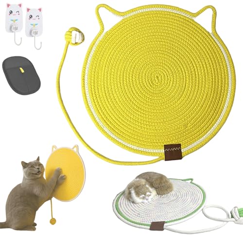 Kratzwunder Doppel-Kratzmatte Katze, Kratzspielzeug & Teppichschutz, Katzenbett mit Kratzmatte 2 und 1, Schutz für Möbel & Teppiche, 35/43 / 50/60 cm Verschiedene Größen(Gelb,35cm)