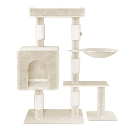 VANCHEMO Katzenbaum Kletterturm Spielen Katzen Kletterbaum Groß Katzenklettergerüst Nehrstöckiger Katzenkratzbaum Plattformen für Katzen zum Klettern, Kratzen (Typ D, Beige)