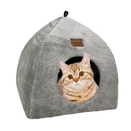 Whiwhi Katzenhöhle für Drinnen Katzenzelt mit Waschbarem Plüschkissen Weiches und Flauschiges Katzenhaus Klappbar Katzenbett Höhle 40x40x35cm von Whiwhi
