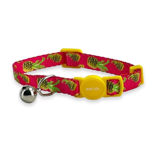 Ancol Verstellbares Katzenhalsband mit Sicherheitsglocke und auseinanderbrechbarer Schnalle, lustiges Sommermotiv, tropisches Ananas-Muster
