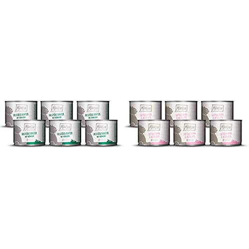 MjAMjAM deliziöses Rentier mit Hühnchen an leckeren Möhrchen 6x200 g, 1er Pack (1 x 1200 g) & Premium Nassfutter für Katzen - saftiges Huhn und wildlachs, 6er Pack (6 x 200 g)