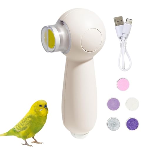 Vogelnagelmühle | Elektrischer Papageiengrinder | vielseitiges Pflegezubehör für Vögel, Nagelknipser mit 6 Schleifköpfen zum Schneiden, Hamster