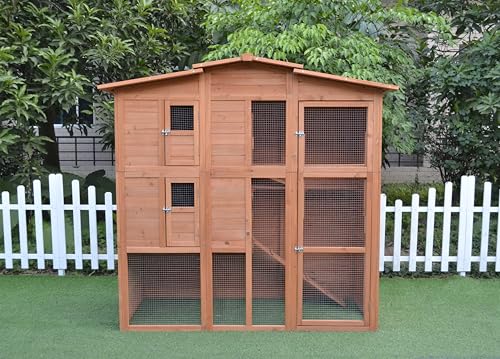 Mucola Hasenstall mit Freilaufgehege 171x80x166 cm Kleintiergehege Holz inklusive 2 Rampen Kleintierhaus Hühnerstall 2 Nestboxen (4 Nistplätze) Hühnervoliere
