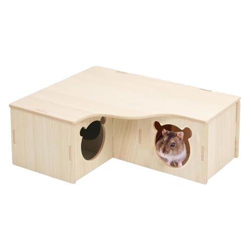 Geschmacklos und ungiftig: Hergestellt aus Haustiermaterialien ohne schädliche Gerüche sorgt für das Wohlbefinden Ihres Hamsters und verleiht ihrem Lebensraum eine natürliche Note. BITT-resistent: Dieses Versteck aus robustem, hochwertigem Holz ist so konzipiert, dass sie kauen können, um eine lang anhaltende Verwendung zu gewährleisten und Ihr Haustier zugänglich zu machen. Interaktives und ansprechendes Design: Das Versteck ist gleichzeitig als Spielzeug, das Erkundung und Spiel fördert, was dazu beiträgt, die Neugier und geistige Aktivität Ihres Hamsters zu stimulieren. Gemütliches Versteck für Hamster: Dieses hölzerne Hamsterhaus bietet einen sicheren und komfortablen Raum und hilft Ihrem kleinen Haustier, sich in seiner Umgebung sicher und wohl zu fühlen. Ideal für kleine Haustiere: Perfekt für syrische Hamster, Zwerghamster, Rennmäuse, Degus und kleine Ratten, was es zu einer vielseitigen Ergänzung für den Lebensraum eines kleinen Haustieres macht.