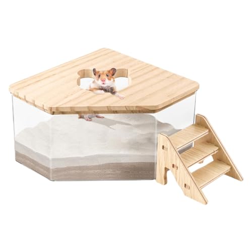 Hamster Sandbad, Hamster Sand Baden Transparent Acryl Sandbad Kleintiere Sandbad Behälter und Hamster Zubehör mit Naturholz für Hamster Rennmäuse von Gvblkq