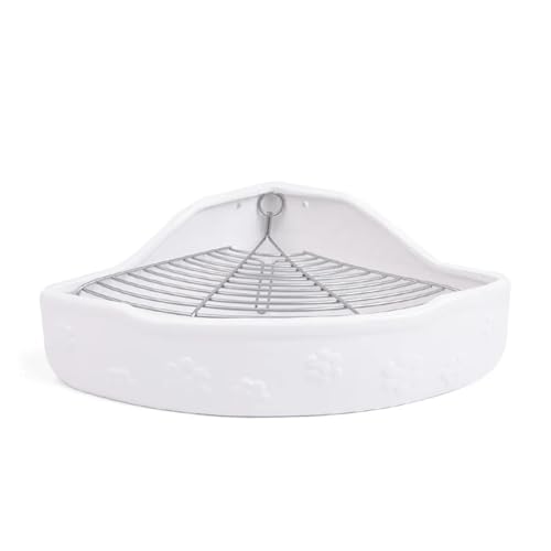 Keramik-Kaninchentoilette mit Gitter, Eck-montiertes Trainingstöpfchen für Hamster/Chinchillas, kaufeste Toilettenablage (Weiß, S)