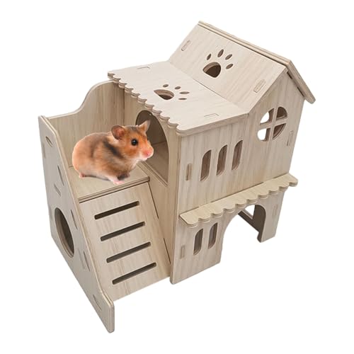 GESUNDES HOLZ - Schützen Sie die Gesundheit Ihres pelzigen Freundes mit unserem Hamster-Labyrinthaus aus hervorragendem Massivholz. Sein natürlicher Charme und die glatten Ränder tragen zur Ästhetik Ihres Hauses bei. Jedes Stück wird zur Sicherheit von Hand poliert. 【Großer Raum】 Verbessern Sie den Wohnraum Ihres Hamsters mit einem sorgfältig gefertigten Doppeldecker-Labyrinthaus, das geräumige und komfortable Liegebereiche zusammen mit einem ansprechenden Vergnügungspark bietet, um ihn zu unterhalten. 【Stimulierender Aufstieg】 Mit exquisiten Treppen, um die verschiedenen Etagen zu verbinden, ermutigt es sie zum Klettern und Rutschen, fördert die Interaktion und das Spielen und erhält gleichzeitig ihre Gesundheit und natürlichen Instinkte. 【Decor Cage】Durchdacht gestaltete Spielbereiche bieten einen ansprechenden und optisch ansprechenden Raum, der gleichzeitig als atemberaubende Landschaftsdekoration dient. Ein so vielseitiges Stück sorgt für ein farbenfrohes und vielfältiges Wohnumfeld. 【Mühelose Wartung】Montieren Sie dieses Hamster-Labyrinthhaus in nur wenigen Schritten und halten Sie Ihre Innenumgebung sauber und hygienisch. Seine einfache Demontage ermöglicht eine einfache Reinigung.