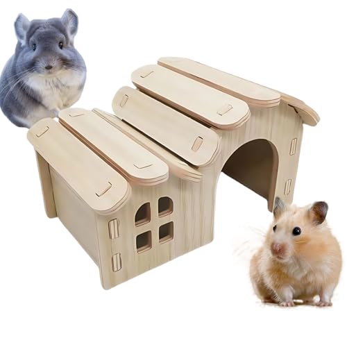 Jubilofex Hamster Home – Tierhütte für Kleintiere, Zubehör aus Holz für Haustiere, Hütte für Rennmäuse, Ruhe, Spielzeug, Haus für Frettchen und Goldbären